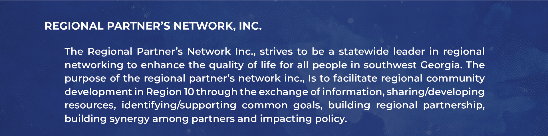 To be a statewide leader in regional networking to enhance the quality of life for all people in