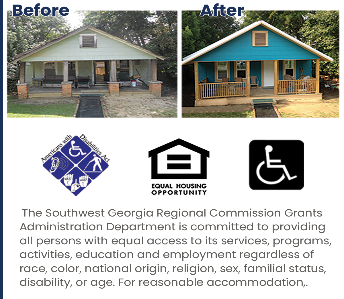 The Southwest Georgia Regional Commission, with a grant from the Georgia Department of Community Affairs, offers a Housing Rehabilitation Program through the Community HOME Investment Program {CHIP).