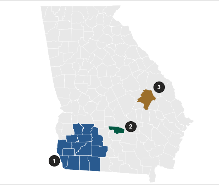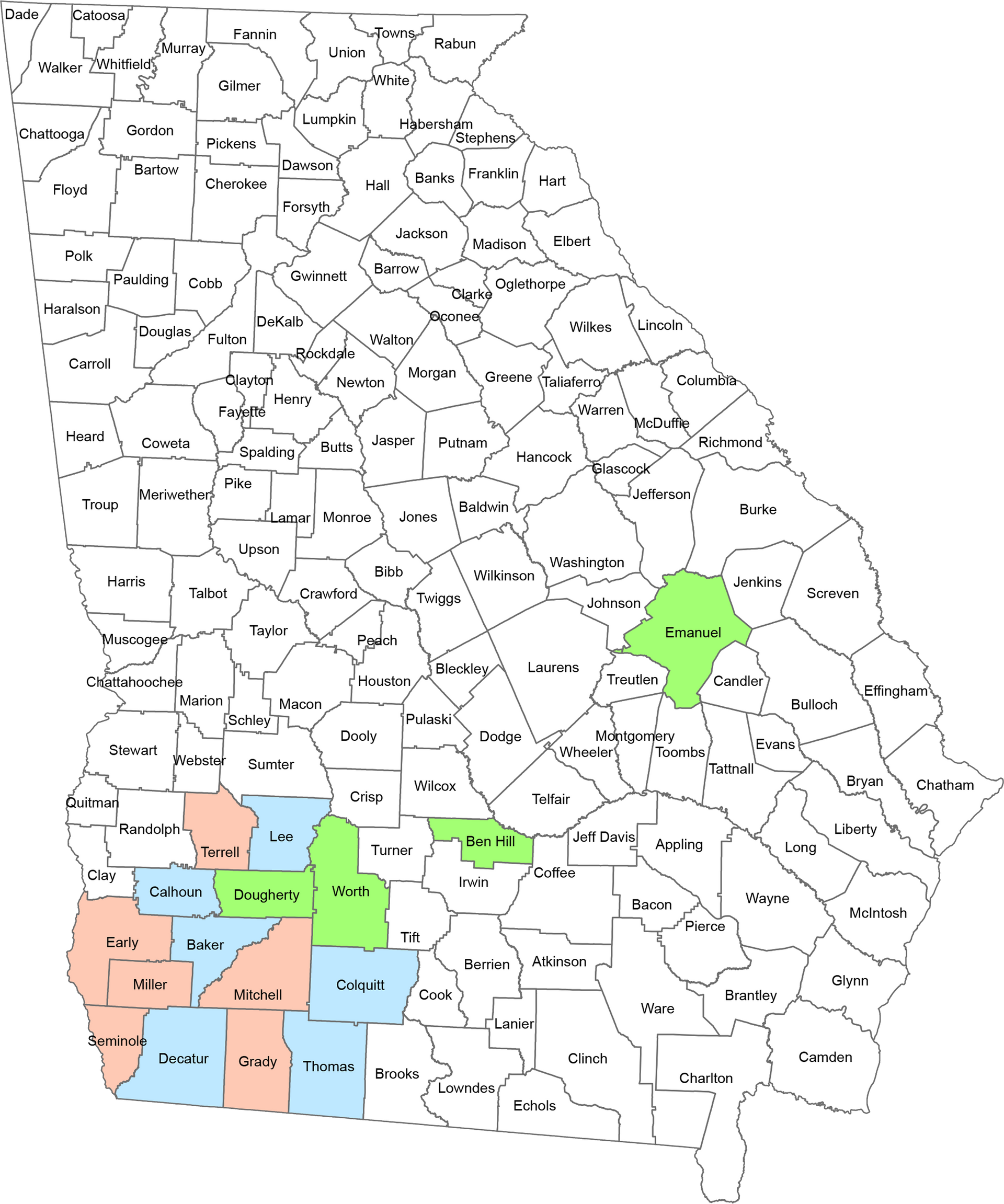 - Southwest Georgia Regional Commission Counties of Mitchell, Baker, Calhoun, Colquitt, Decatur, Dougherty, Early, Grady, Lee, Seminole, Miller, Terrell, Thomas, Worth.