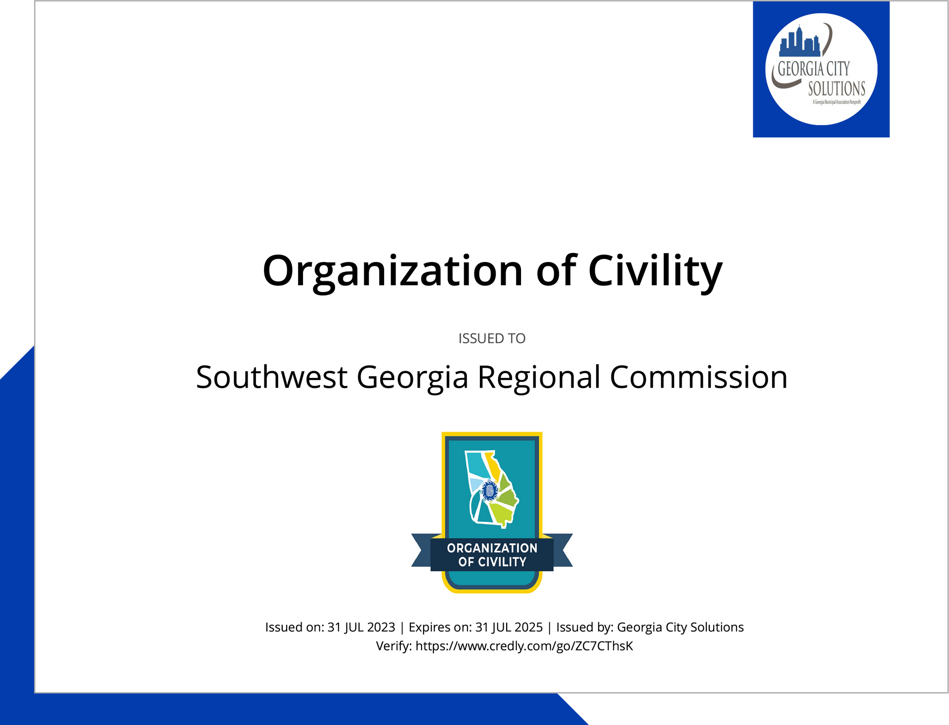 CAMILLA, GEORGIA – The Southwest Georgia Regional Commission (SWGRC) has been designated as an Organization of Civility by the Georgia Municipal Association (GMA). Southwest Georgia Regional Commission adopted a civility resolution in GMA’s Embrace Civility program on July 27, 2023.